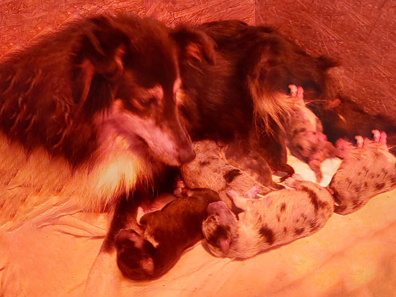Die Welpen sind munter und trinken kräftig. Sie entwickeln sich prächtig, und Benita meistert ihre Aufgabe als Mama mit beeindruckender Ruhe!