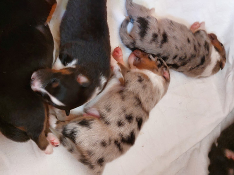 Unsere Welpen entwickeln sich wunderbar und wachsen täglich ein Stück weiter. Inzwischen öffnen sich langsam die ersten Augen – ein besonders schöner Moment in dieser frühen Lebensphase. Alle sind gesund, munter und zeigen bereits ihre ersten kleinen Persönlichkeiten. Es ist eine Freude, ihre Entwicklung zu begleiten.